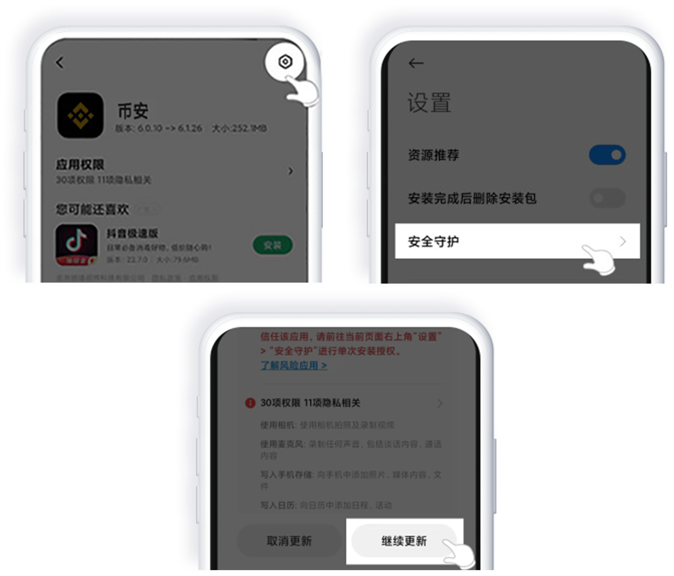 - • 下载好了币安App安装包,把数据流量都关掉再安装。