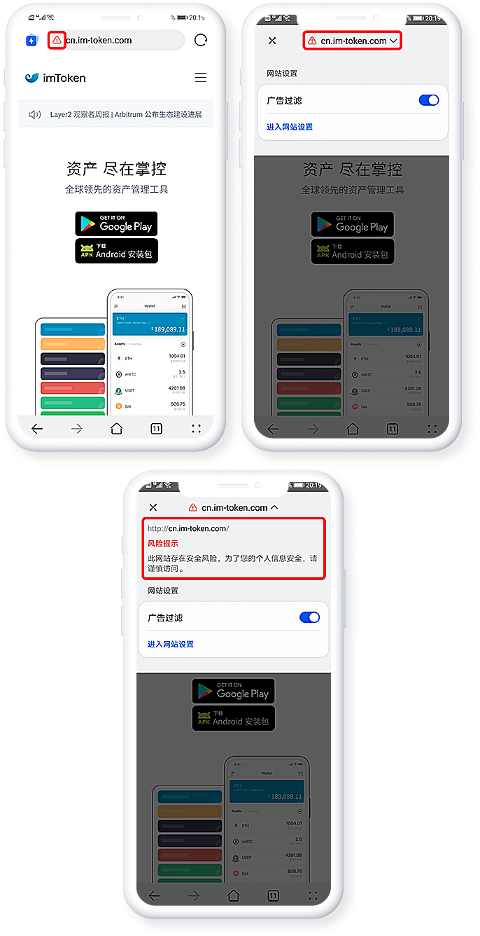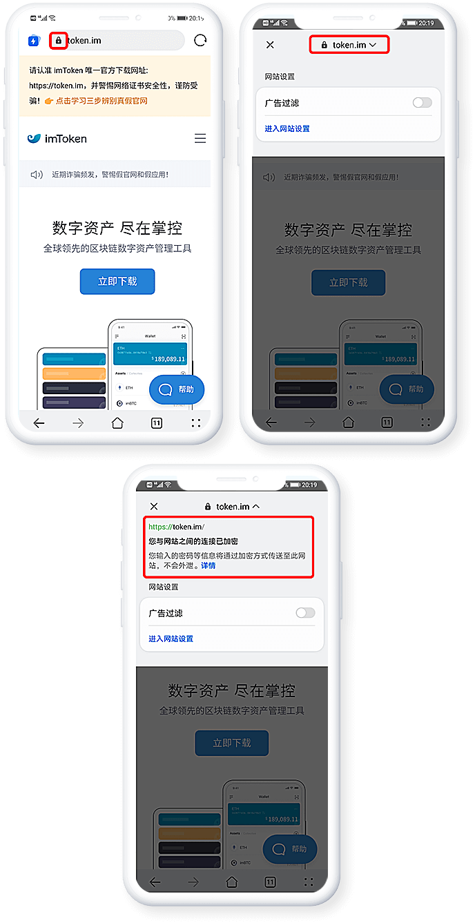 谨记,在以上三步检查都确认无误的情况下, 才可继续下载安装imToken。
