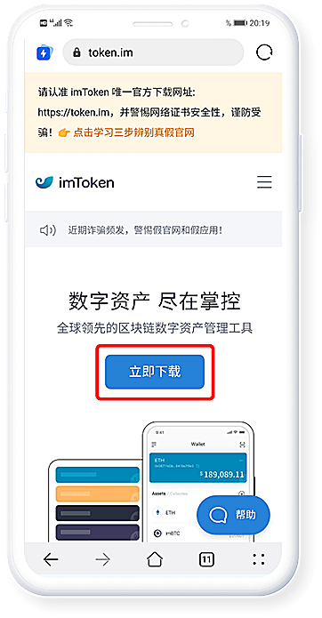 ① 如果你的手机是安卓系统的,在imToken 官网点击「立即下载」