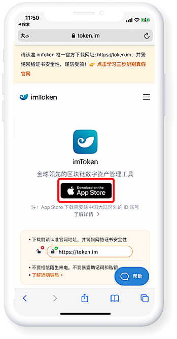 ① 如果你的手机是苹果iOS 系统的,则在imToken 官网点击「App Store」