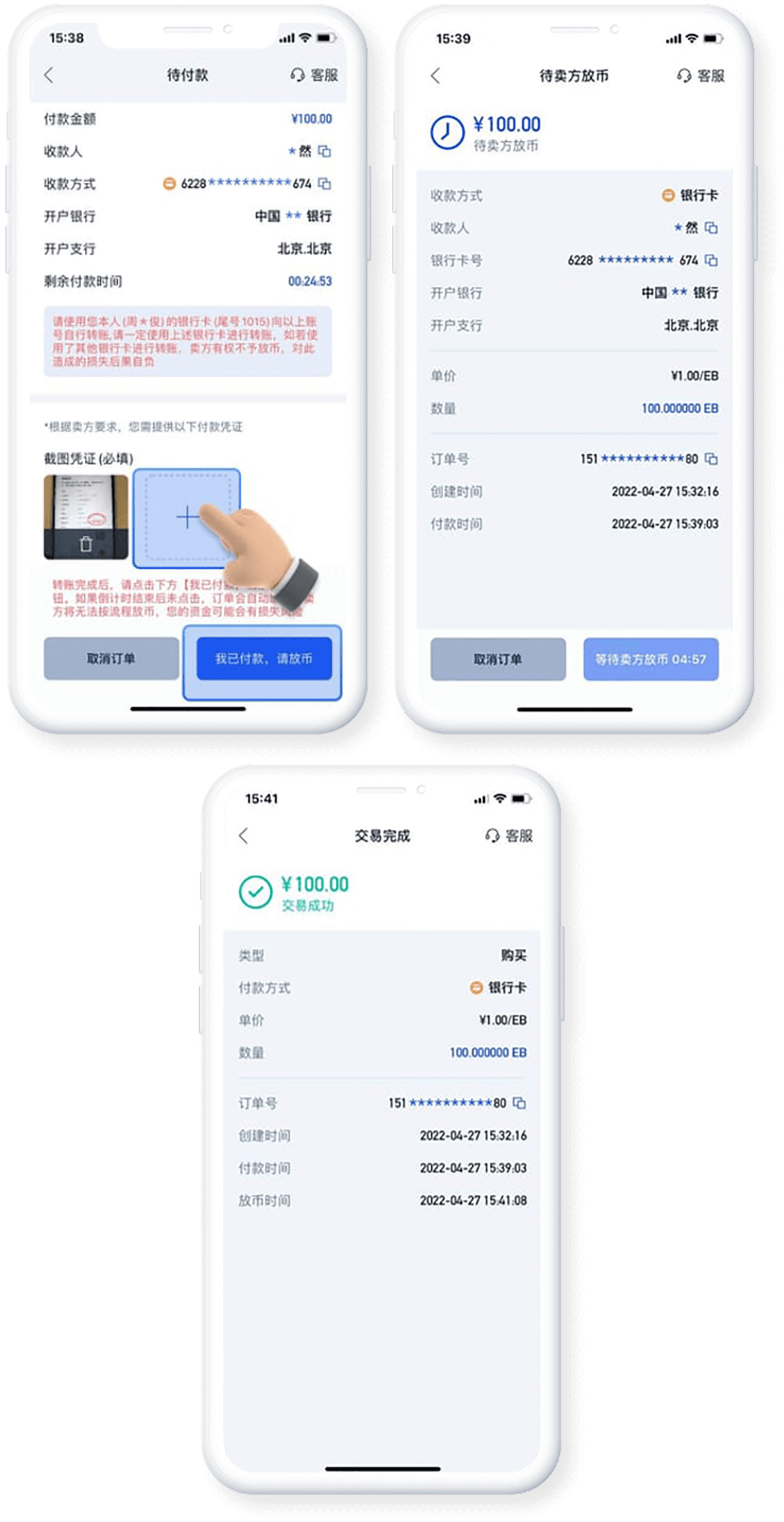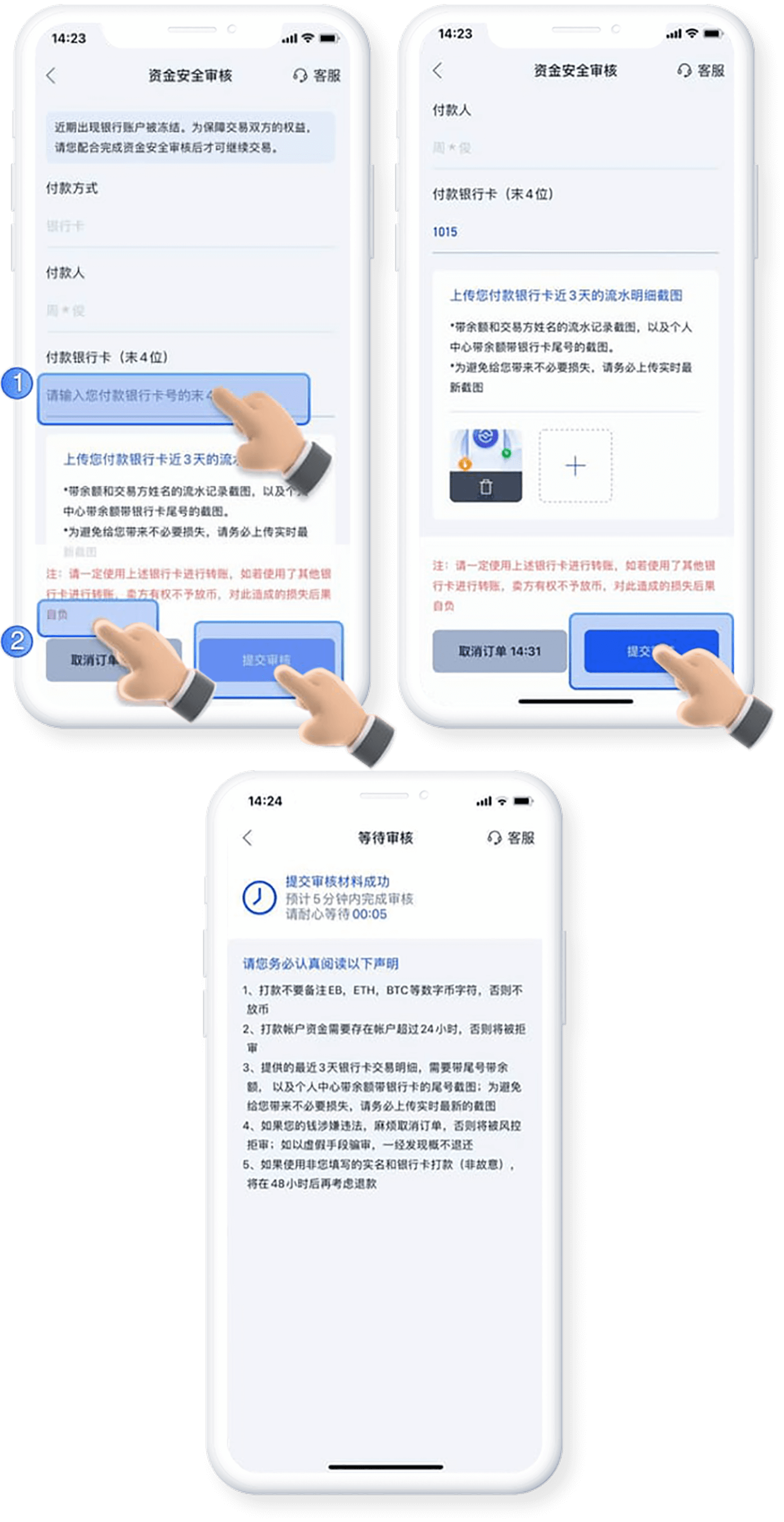 • 付款银行卡必须是KYC认证本人的实名银行卡。